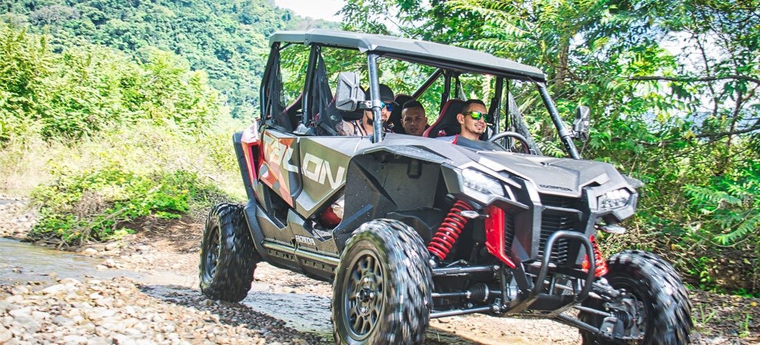 Experience the thrill of driving a powerful 4 seater side-by-side through Jaco’s lush tropical forest trails, rivers, and scenic viewpoints for an unforgettable off-road adventure.