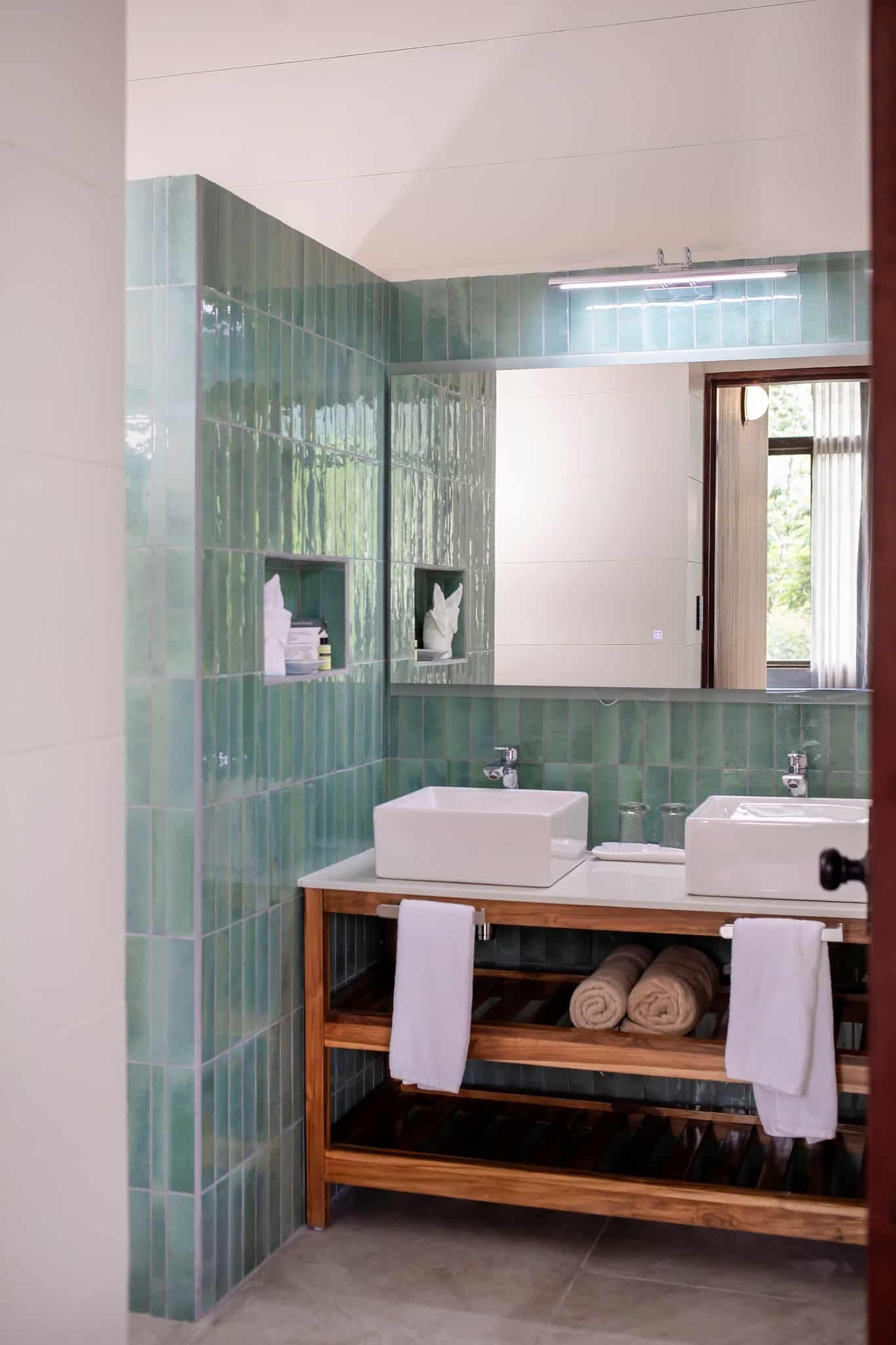 Each room includes an en-suite bathroom and a balcony overlooking a stream.
