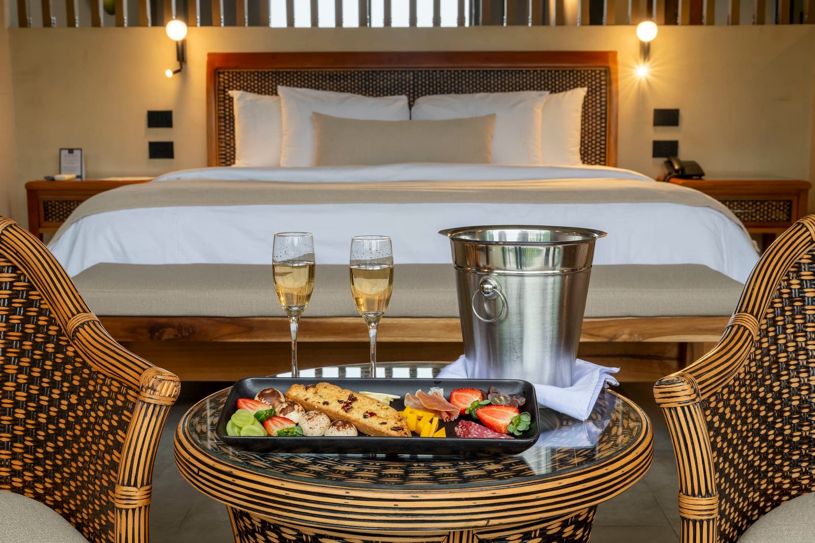 Complimentary platter of appetizers and a bottle of house wine upon arrival.